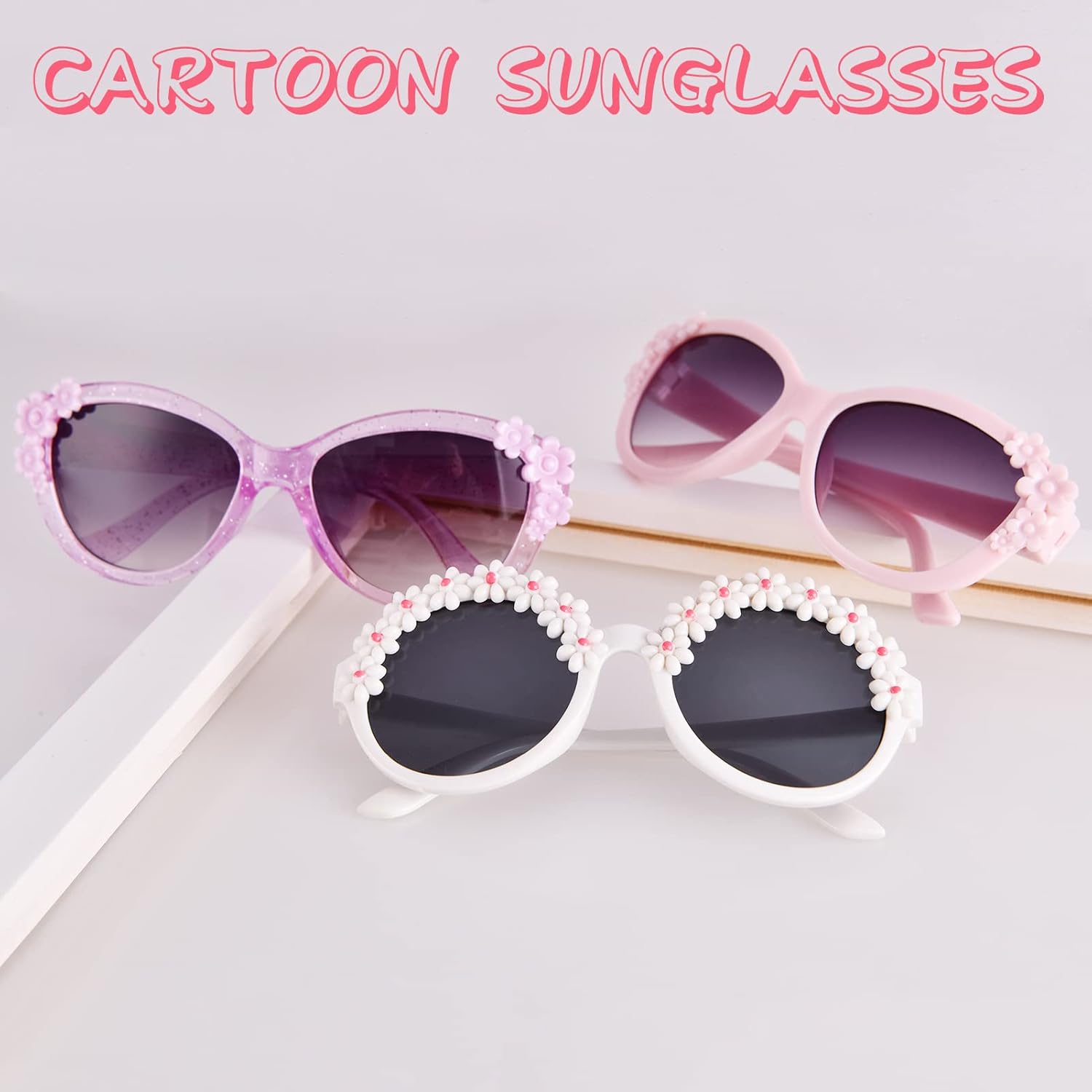 3-Pairs Gift Kids Sunglasses Girls, Cute Flower Frame Cartoon UV400 Glasses, Toddler Sunglasses for Ages 3-10
