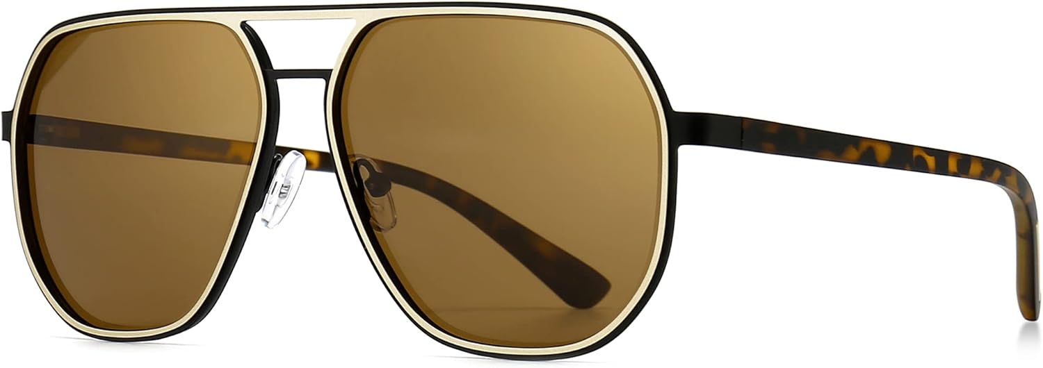 Polygon Aviator Sunglasses for Men Polarized Trendy Square Sun Glasses Retro Pilot Shades UV Protection